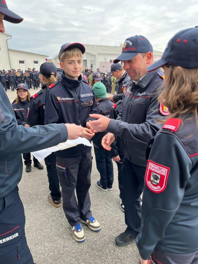Wir gratulieren Hofstetter Paul für das abgeschlossene FjWt Abzeichen in Silber, Gillhofer Oliva und Mühleder Paulina für das abgeschlossene FjWt Abzeichen in Bronze sowie alle Teilnehmer/innen der Feuerwehrjugend Grünbach.
