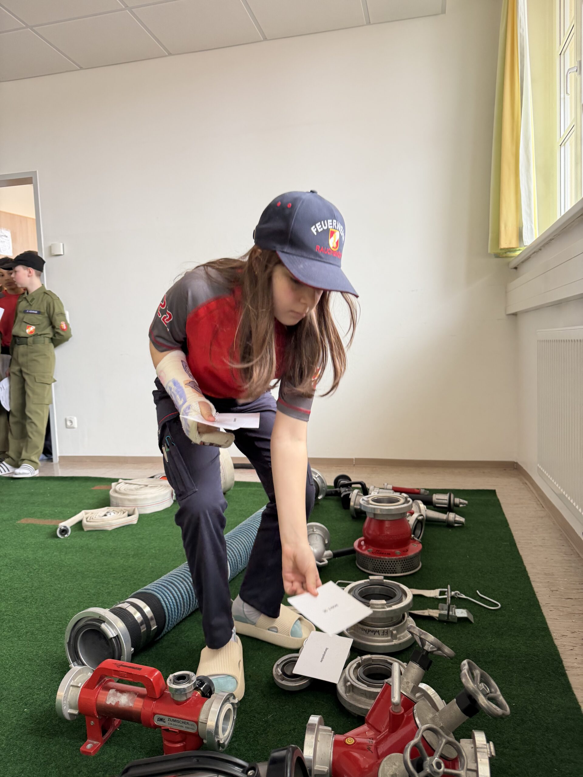 Abgeprüft wurde die komplette Feuerwehrpalette in elf Stationen von Dienstgraden, Gerätekunde, Knoten, Gefährliche Stoffe, Atemschutz, Funk, vorbeugender Brandschutz, technische Einsätze bis hin zur Ersten Hilfe.