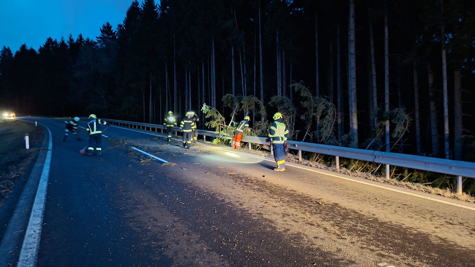 Nördlich der Ortsgrenze zu Oberrauchenödt stürzte ein Baum auf die Fahrbahn und blockierte diese teilweise. Der Baum wurde von unseren Kameraden rasch entfernt. Anschließend wurde die Fahrbahn gereinigt und der Verkehr wieder freigegeben.